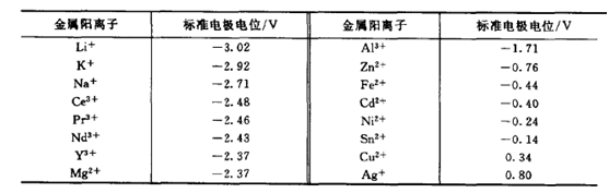 圖1 常見金屬陽(yáng)離子的標(biāo)椎電極電位