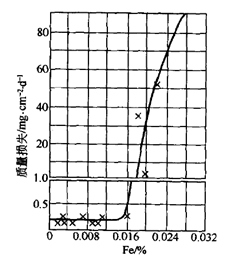 圖2 Fe含量對(duì)Mg耐蝕性的影響
