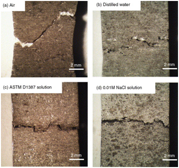 圖3 不同環(huán)境下鎂合金的應(yīng)力腐蝕開裂形貌